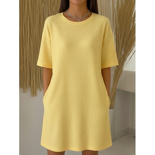 Per donna Abito al ginocchio Abito scozzese Vestito Casual Classico Quotidiano Vacanza Vestibilità comoda Semplice Manica Corta Girocollo Giallo Chiaro Rosa chiaro Nero Bianco Estate Primavera