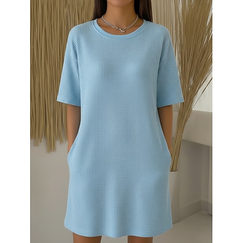 Per donna Mini Abito Abito a trapezio Abito Estivo Casual Quotidiano Vestibilità comoda Semplice Manica Corta Scollo a V Blu Nero Fucsia Verde Estate Primavera