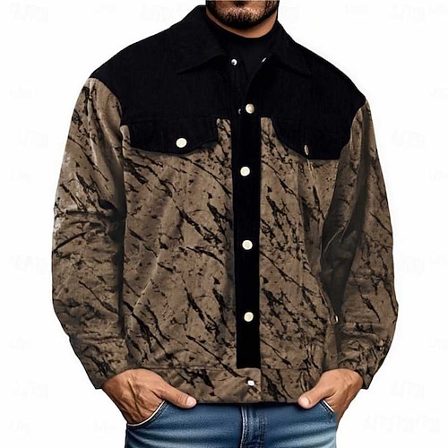 Per uomo Camicia Camicia Estiva Camicia casual Camicia da Spiaggia Camicia di Velluto a Coste Camicia con Bottoni Kaki Verde militare Grigio scuro Manica Lunga Grafico Blocco di colori Bavero Vacanza
