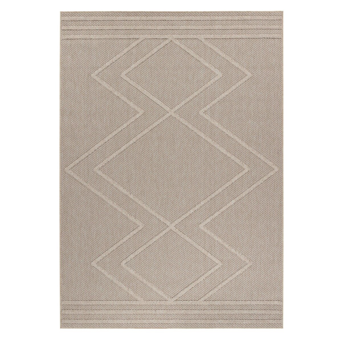 Carpet City Teppich "In-& Outdoorteppich Santorini 411, 3D-Effekt, Boho-Optik" rechteckig 5 mm Höhe Wetterfest & UV-beständig für Terrasse, Balkon, Küche, Flur creme B : 150cm 1 Stk., 5mm, L: 150cm