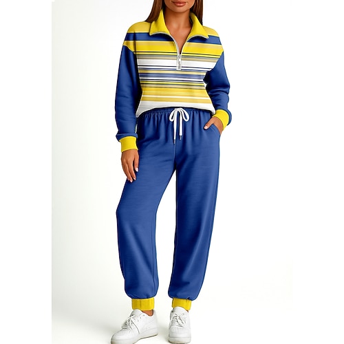 Per donna Maglia Tuta da Ginnastica Tuta da 2 pezzi Coulisse Con zip A righe Completo Abbigliamento Primavera Blu Lavoro All'aperto Viaggio Leggero Di tendenza Manica Lunga Sport Abbigliamento