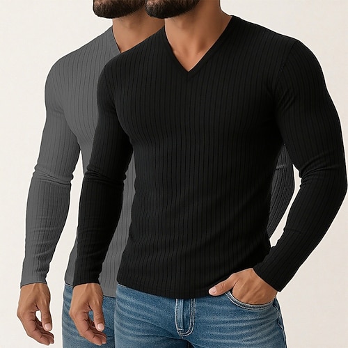 Per uomo Maglietta Canotta Muscolare Maglietta a Maglia a Coste Camicia a Maniche Lunghe Manica Lunga Scollo a V Primavera Autunno Inverno Semplice Striscia di Fossa Moda Designer Essenziale 2 Pezzi