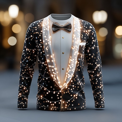 Natale Per uomo Costume di Natale Smoking Maglietta Manica Lunga maglietta Stampa 3D Girocollo Camicia Moda Essenziale 3D Streetwear Casuale Quotidiano Nero 1 Nero 3 Nero 2 Estate Primavera