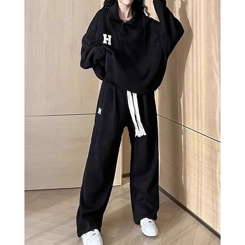 Per donna Set di tute e pullover Tuta da 2 pezzi Abiti da salotto Coulisse Tinta unita Completo Abbigliamento Autunno Nero Blu Escursionismo Lavoro Corsa Manica Lunga Sport Abbigliamento sportivo