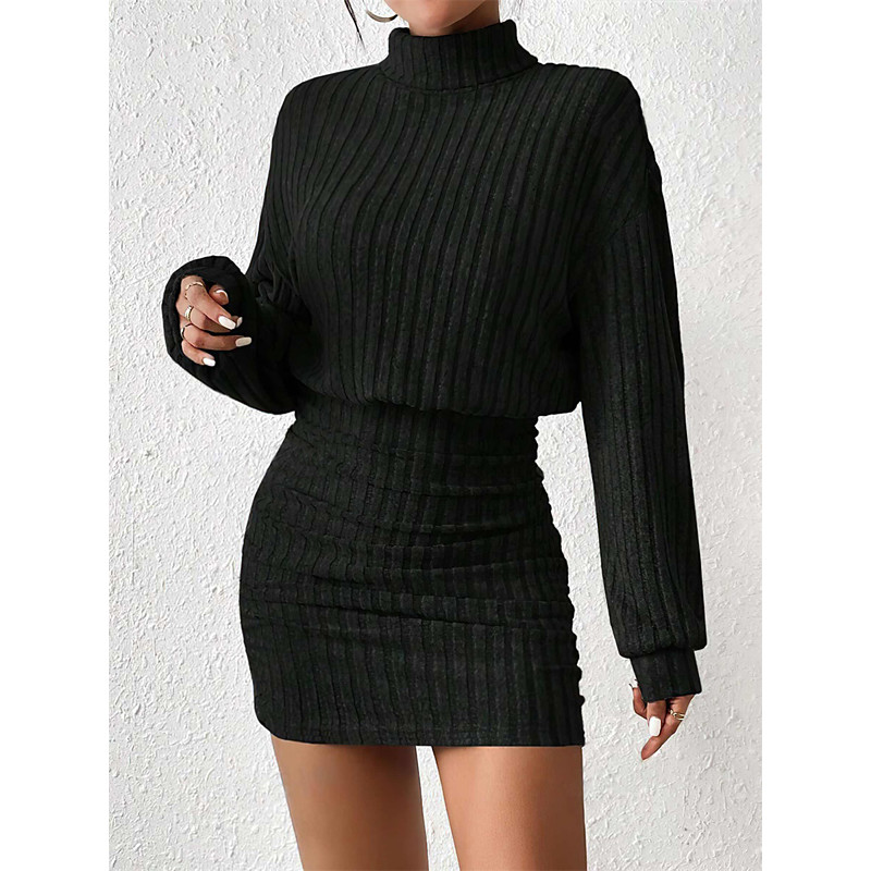 Women's Midi Dress Black Dress Cocktail Dress Bodycon Formal Dresses Elegant Casual Party Formal Date Regular Fit Solid Color Long Sleeve Turtleneck Black Gray Spring Fall Winter