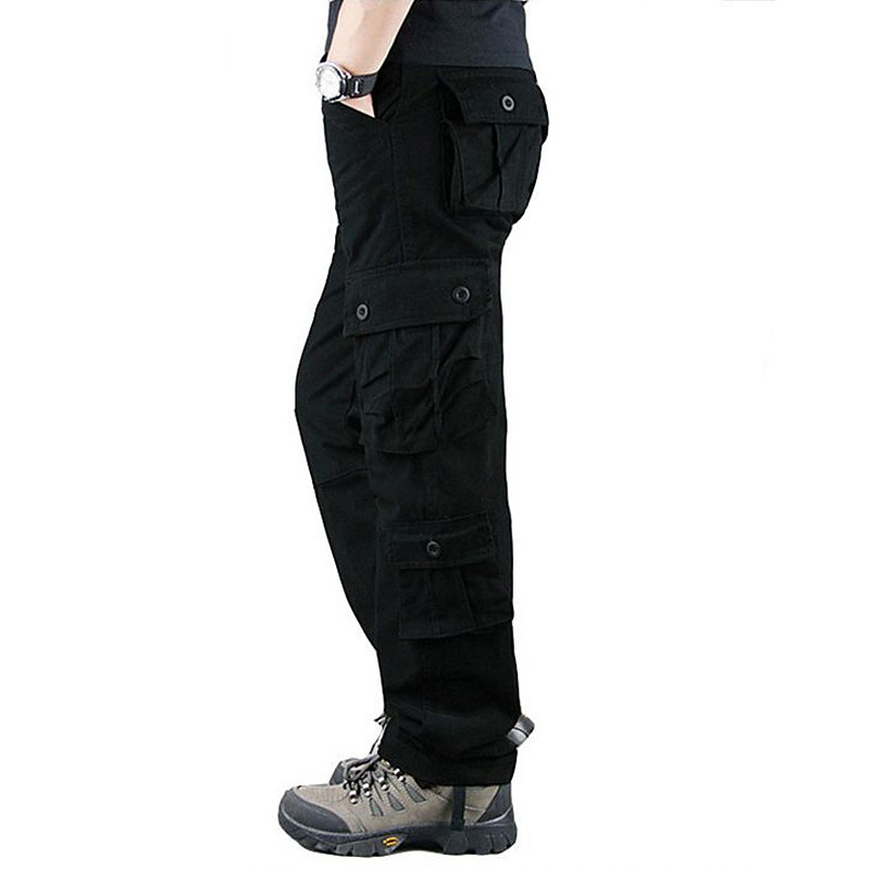 Men's Cargo Pants Trousers Buttons Multi Pocket Plain Wearable Outdoor Daily Camping Hiking Fashion Classic Black White