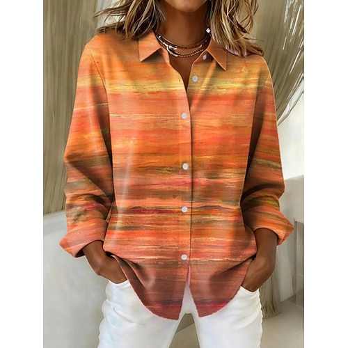 Women's Shirt Ombre Graphic Plaid Elegant Bohemia Vintage Long Sleeve V Neck Regular Tops Work Daily Going out Buttons Red Blue Orange Gray Spring Fall Winter