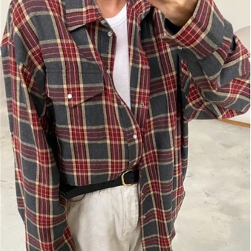 Per donna Camicia Blusa Plaid Moderno Casual Manica Lunga Colletto a Camicia Top Regolari Quotidiano Ferie Bottoni Nero Rosso Marrone Verde Autunno