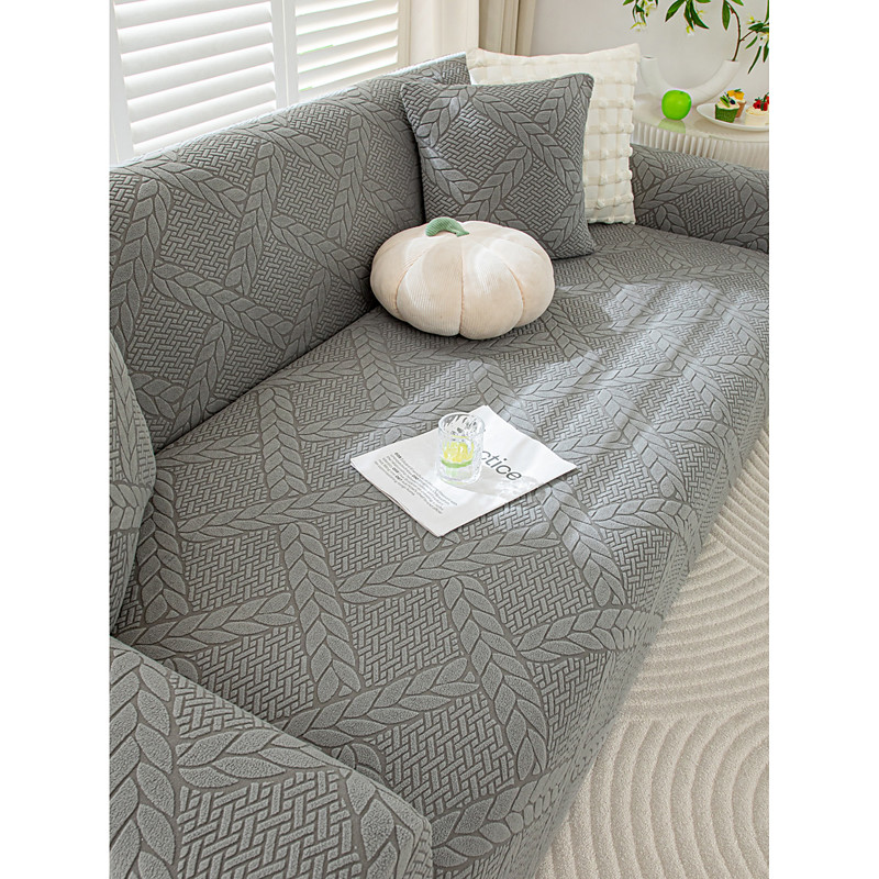 1 Piece Geometric Line Jacquard Velvet Sofa Cover, Simple Style Elastic Fitted Couch Slipcover, Pet-Friendly, Anti-Slip, Dustproof, Machine Washable, All-Season Sofa Protector