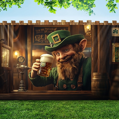 arazzo appeso a parete con trifoglio e gnomo per il giorno di san patrizio, grande arazzo murale, decorazione fotografica, coperta, tenda, casa, camera da letto, soggiorno, decorazione