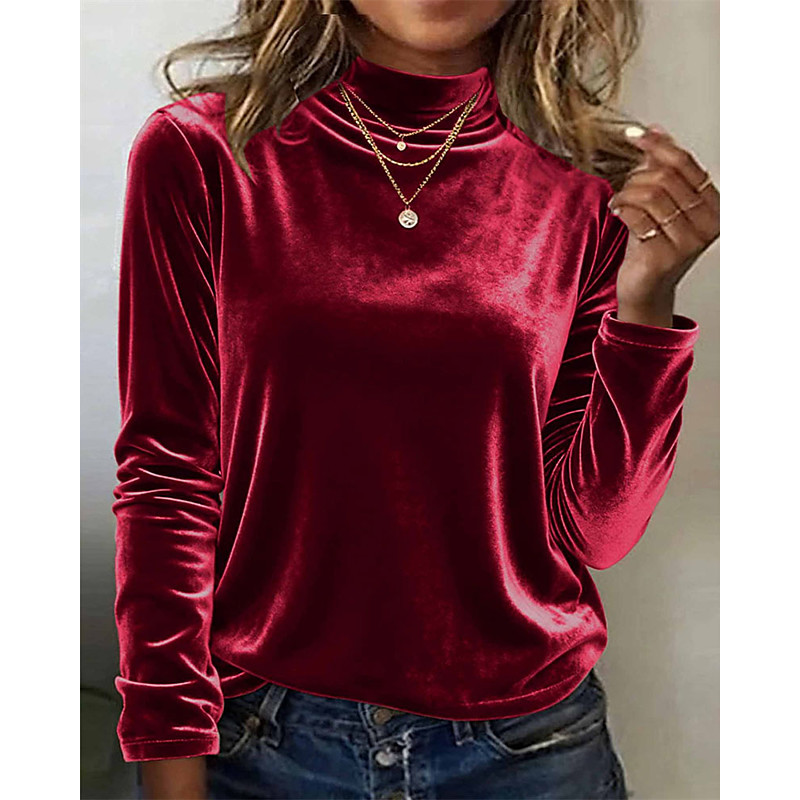 Christmas Women's Velvet Blouse Dressy Tops Solid Color Plain Elegant Vintage Daily Long Sleeve High Neck Regular Tops Work Daily Holiday Ruched Patchwork Draped Black Wine Brown Spring Fall