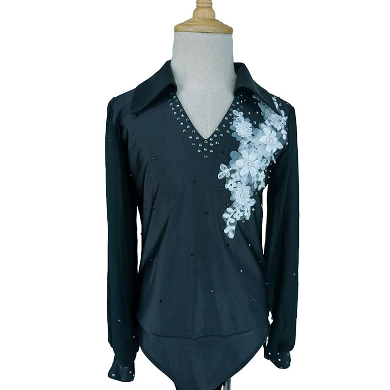 Men's Boys Ice Skating Tops High Elasticity Training Competition Skating Wear Classic Crystal / Rhinestone Long Sleeve Ice Skating Figure Skating
