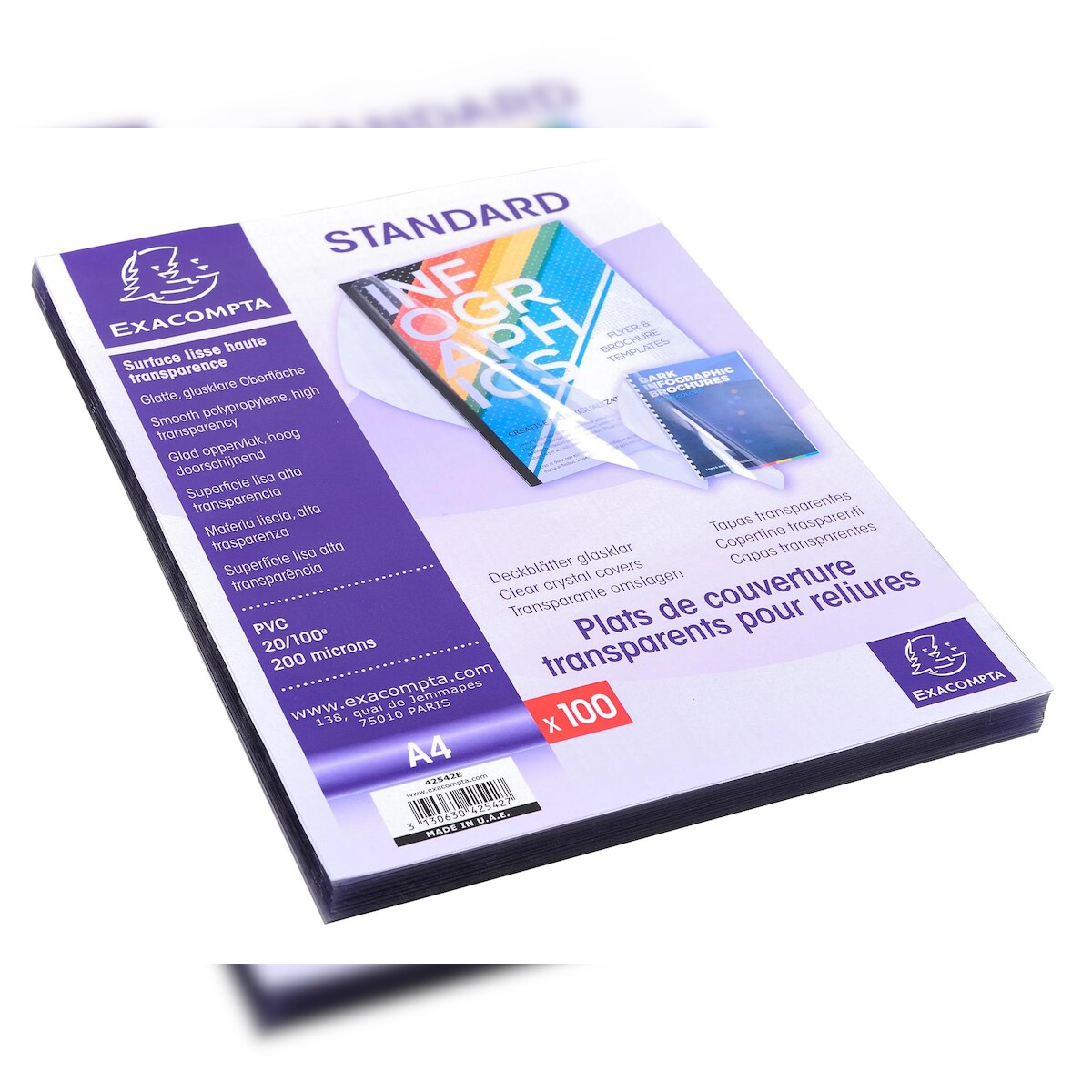 Exacompta 42542E 5x 100er Packung Einbanddeckel aus PVC 200µ, für DIN A4 - Kristall