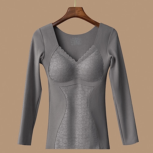 Per donna Strato di base superiore Biancheria Intima Termica Top Inverno Nero Cachi Atletico Corsa Fitness Foderato in pile Morbido Manica Lunga Sport Abbigliamento sportivo