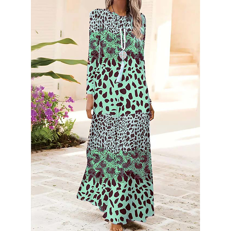 Women's Maxi Dress Shift Dress A Line Dress Party Casual Boho Daily Date Going out Regular Fit Graphic Animal Leopard Long Sleeve Crew Neck Pink Blue Brown Green Spring Fall Winter Autumn