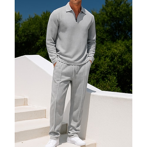 Per uomo Tuta da 2 pezzi Set di tute da ginnastica Abiti da salotto Cerniera a un quarto Tinta unita Completo Abbigliamento Autunno Nero Bianco All'aperto Viaggio Sportivo Traspirante Manica Lunga