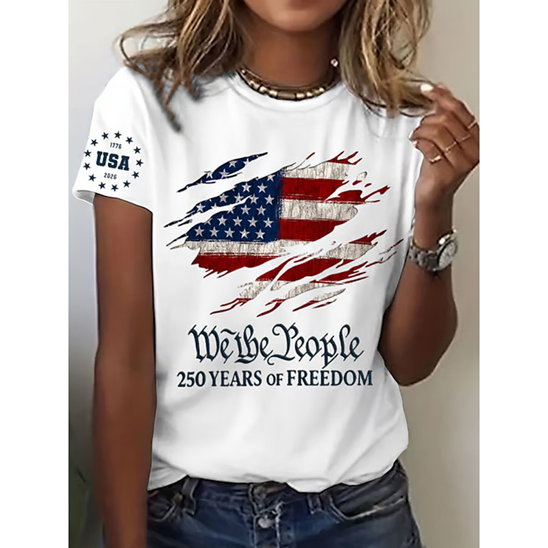 Women's Patriotic T Shirt Graphic Flag Vintage Stylish Classic Short Sleeve Crew Neck Round Neck Regular Tops Daily Weekend Print Black White Navy Blue Royal Blue