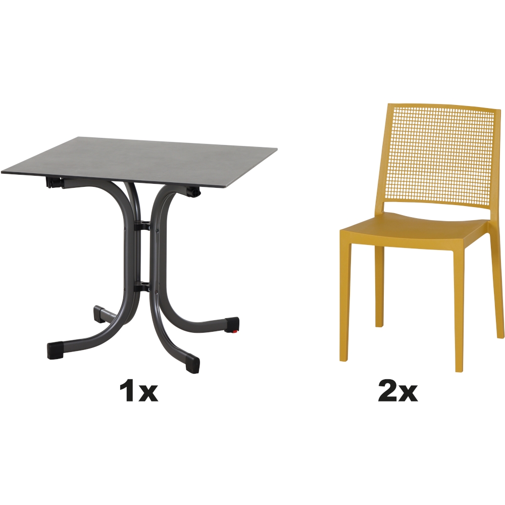SIENA GARDEN Urban Lights Set 5teilig Square Stuhl gastrotauglich mustard mit Tisch Sola 80x80