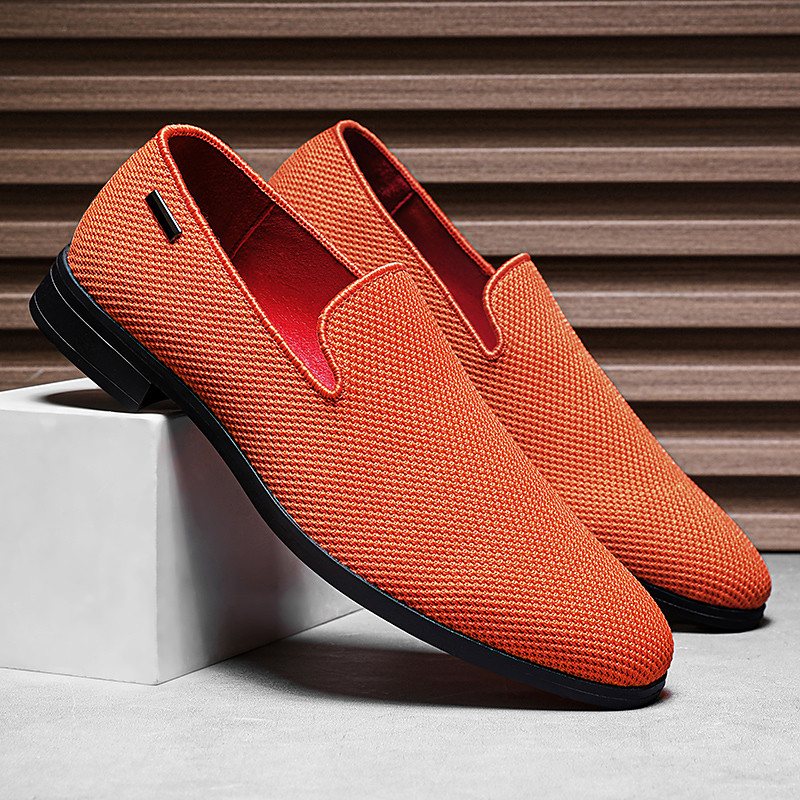 Men's Red Breathable Knit Slip-On Shoes, Lightweight Casual Walking Loafers for Summer, Travel and Streetwear Fashion