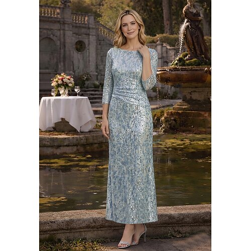 Linea ad A Lunghezza alla caviglia Lunghezza Tè Abito Derby Abito da cerimonia per signora Manica 3/4 Girocollo Elegante Vintage Semplice Formale Derby del Kentucky Con Paillettes con Paillettes