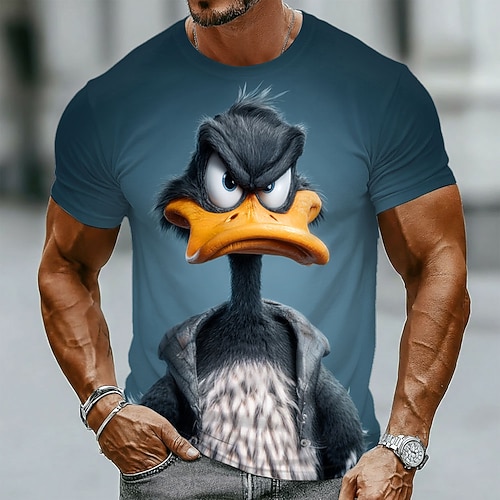 T-shirt da uomo con stampa grafica 3D di un'anatra nera imbronciata in giacca, stile streetwear, stampa all-over, vestibilità slim, abbigliamento casual da esterno, taglie S, M, L, XL, XXL, XXXL