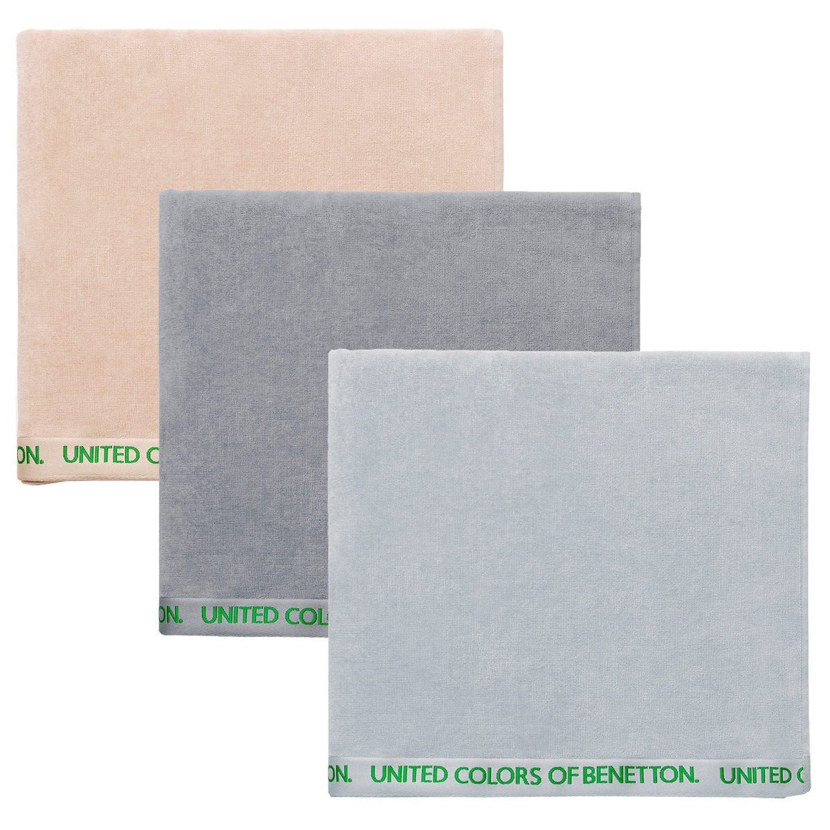 Benetton – Set mit 3 Handtüchern 90 x 160 cm, Bio-Baumwolle, 450 g/m², Beige, Dunkelblau und Grau