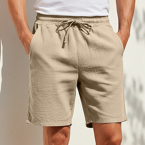 Herren Shorts Leinenshorts Sommershorts Strandshorts Kordelzug Elastischer Bund Einfach Komfort Atmungsaktiv Kurz Täglich Urlaub Ferien Mode Retro Vintage Blau Schwarz Unelastisch