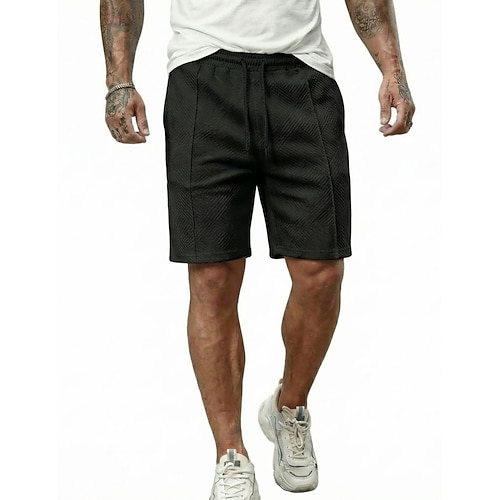 Herren Shorts Sommershorts Strandshorts Freizeitshorts Cordshorts Kordelzug Elastischer Bund Strukturiert Einfarbig Komfort Atmungsaktiv Kurz Täglich Outdoor Strand Urlaub Mode Schwarz Weiß