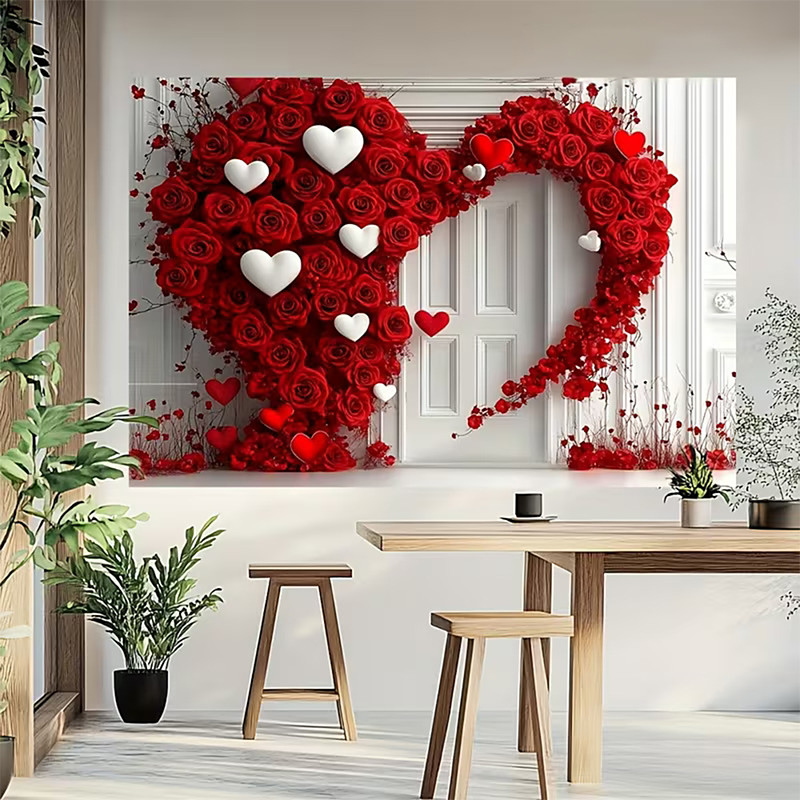 Valentine's Day Tapestry Banners Blanket Rose Love Heart Cute Romantic 3D Party Living Room Shooting Backgrounds Marriage Proposal Decoration Home Decor