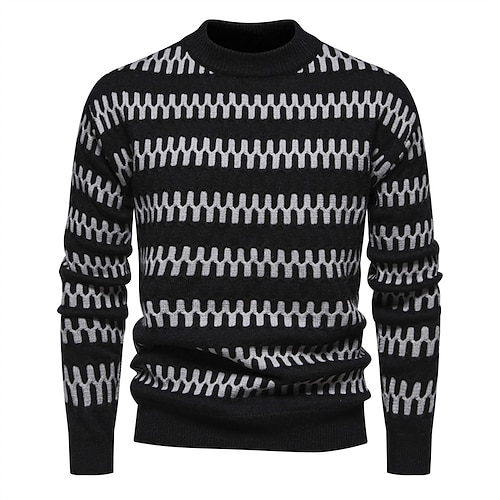 Men's Sweater Pullover Sweater Jumper Knitwear Ribbed Knit Regular Tops Color Block Crew Neck Knitwear Neutral Outdoor Clothing Apparel Spring Fall Black Red S M L