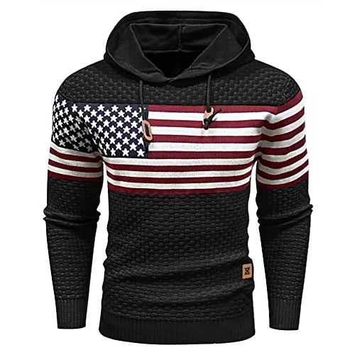Per uomo Felpa con cappuccio Nero Verde militare Rosso Blu Cachi Con Cappuccio Jacquard Bandiera Nazionale Coulisse Stampato Sport Outdoor Quotidiano Ferie Poliestere Streetwear Essenziale Casual