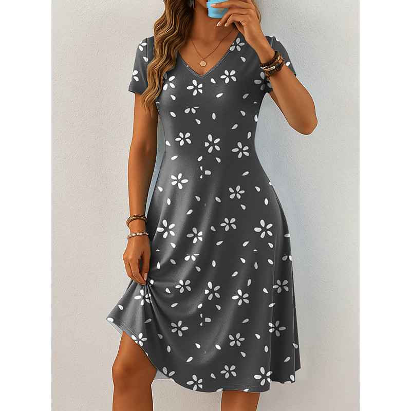 Women's Mini Dress Casual Dress T Shirt Dress Tee Dress Sundress A Line Dress Vacation Casual Boho Beach Regular Fit Floral Graphic Short Sleeve V Neck Blue Purple Green Gray Summer Spring