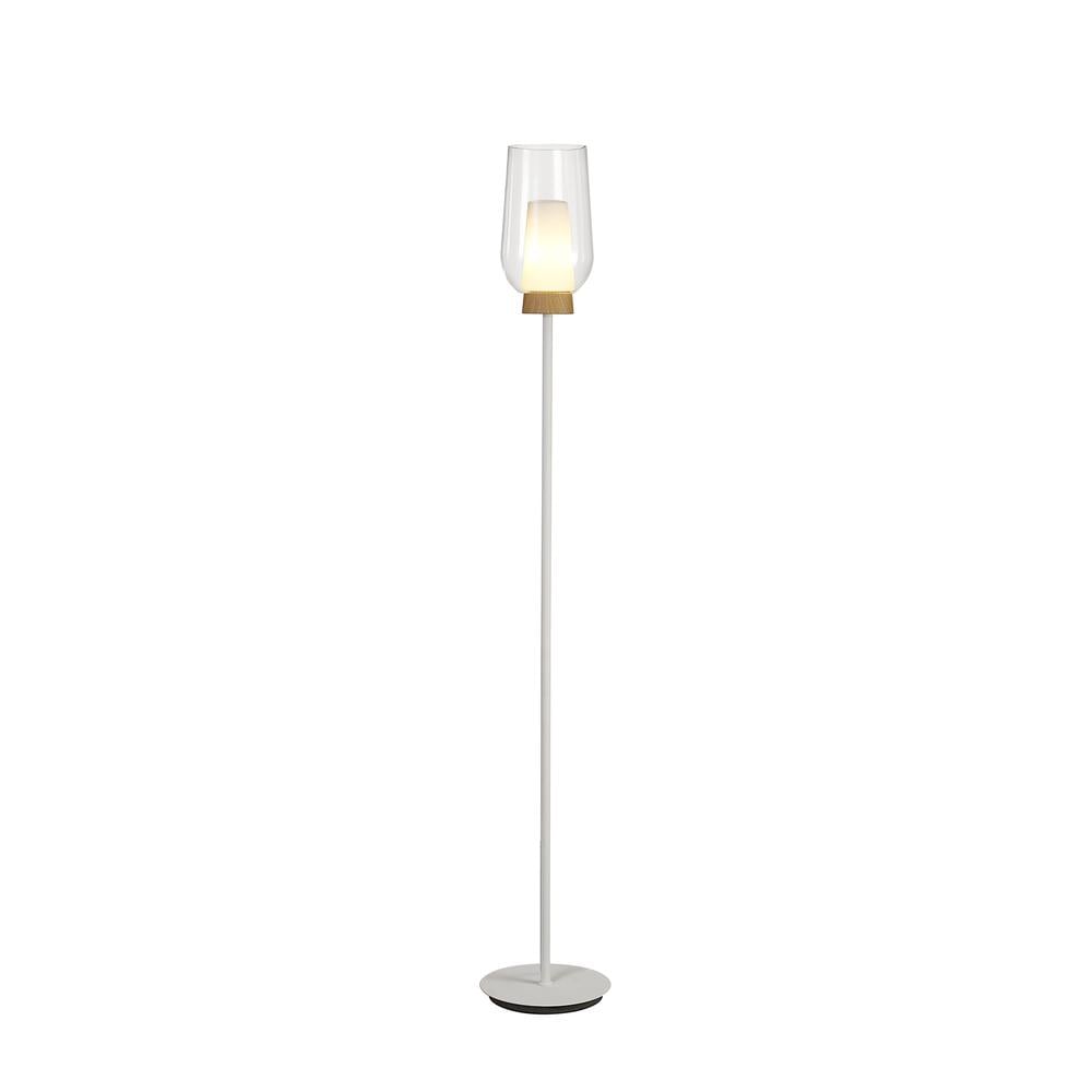 Nora Floor Lamp 1 Light E27 White/Wood/Clear Glass With Frosted Inner Mantra