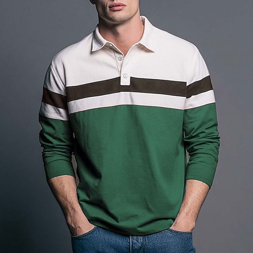 Herren Horizontale Streifen Rugby-Poloshirt Langarm Polo-Shirts Hemden mit Kragen Sportbekleidung Lässig Outdoor Schule Athleisure 3D-Druck Frühling Herbst Winter Blau Rote Grün
