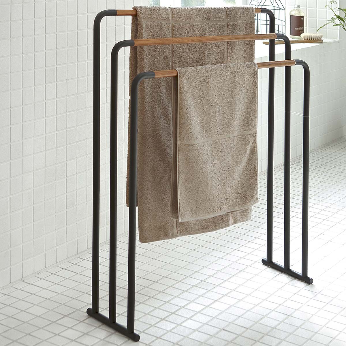 Yamazaki Home Handtuchhalter Handtuchständer freistehend Bad Metall schwarz stehend 3 Reihen