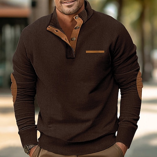 Per uomo Maglia Velluto a coste Maglione Nero Rosso Blu marino Marrone Verde Colletto Mao Blocco di colori Patchwork Sport Outdoor Casuale Quotidiano Streetwear Casual Atletico Primavera Autunno