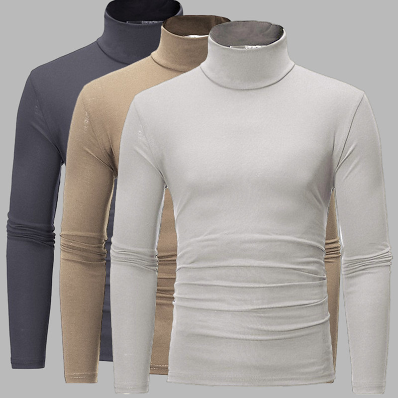 3 Pack Men's T Shirt Turtleneck shirt Long Sleeve Shirt Long Sleeve Rolled collar Fall Fall Winter Plain Lightweight Basic Classic 3-Piece Outdoor Casual Sports white black blue Top Tee for Men