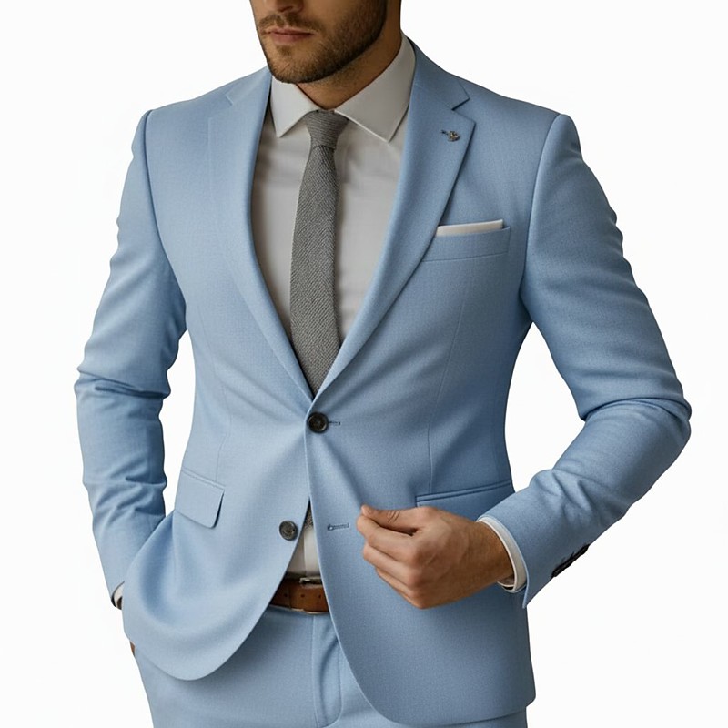 Men's Wedding Winter Wedding Suits Peak Sky Blue Sage Formal Solid Colored Tailored Fit 3 Piece Single Breasted One-button