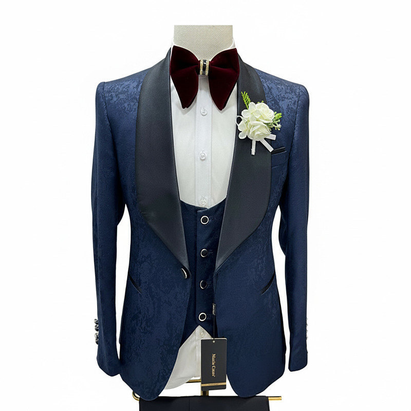 Men's Party Wedding Tuxedos Shawl Lapel Blue Black Party Business Solid Colored Tailored Fit 3 Piece Single Breasted One-button