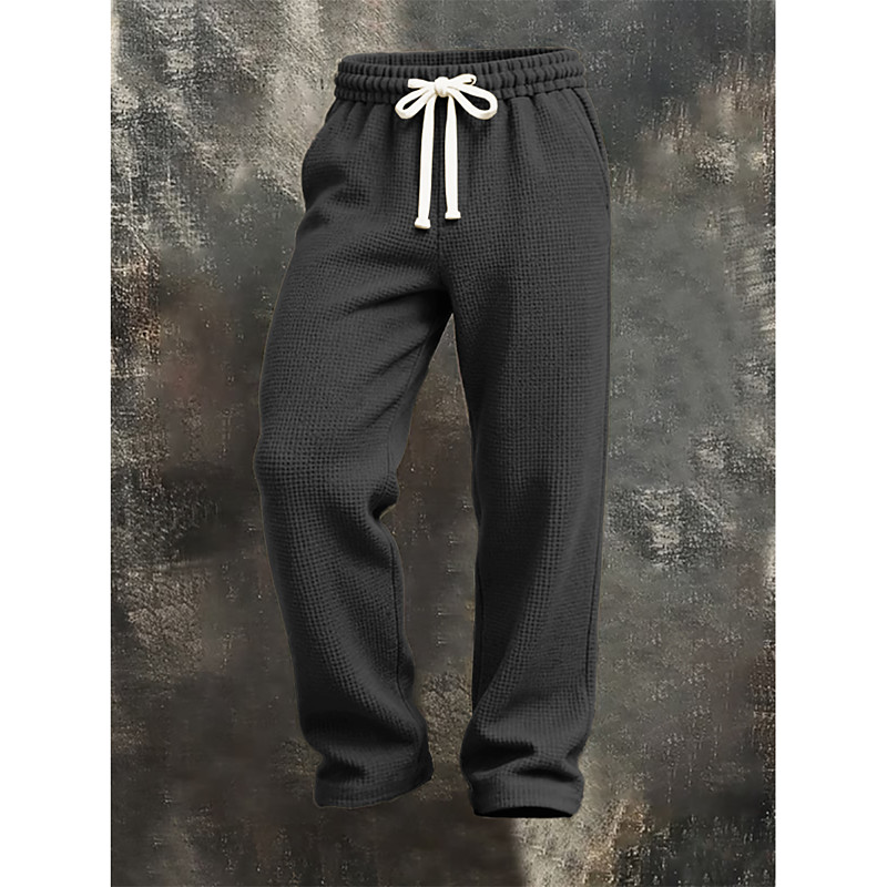 Men's Sweatpants Trousers Waffle Pants Drawstring Pocket Elastic Waist Plain Comfort Sports Outdoor Daily Fashion Casual Dark Brown Black Micro-elastic