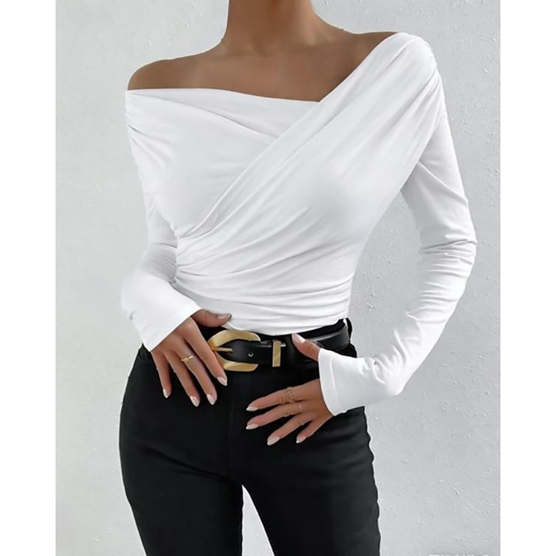 Women's Blouse Plain Stylish Casual Long Sleeve One Shoulder Regular Tops Daily Going out Weekend Patchwork Black White Wine Spring Fall