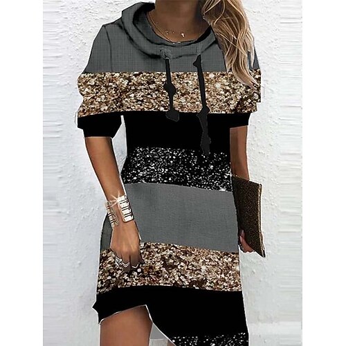 Per donna Mini Abito Tubino Abito a Tubino Festa Casual Boho All'aperto Casa Sport Vestibilità regolare Floreale Grafico Manica Lunga Con Cappuccio Rosa Grigio scuro Grigio Primavera Autunno Inverno
