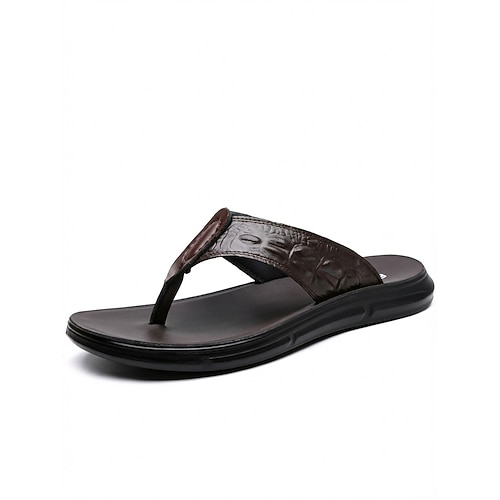 Per uomo Sandali Pantofole e infradito Retrò Footing Informale Giornaliero Da mare Spiaggia Di pelle Comodo Grigio scuro Marrone scuro Estate