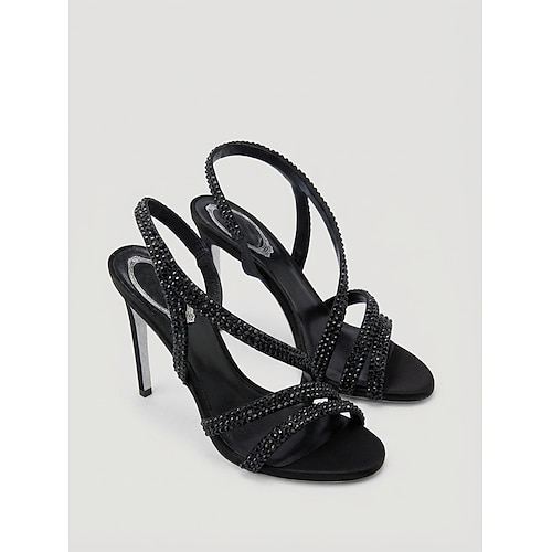 Sandali da donna con tacco alto e cinturini in strass, scarpe eleganti a punta aperta per cocktail party e balli di fine anno. eventi serali