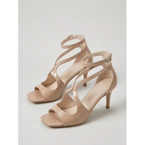 Sandali da donna color nude con tacco alto e cinturini, eleganti scarpe da cerimonia a punta aperta per invitati a matrimoni, matrimoni in giardino eventi formali