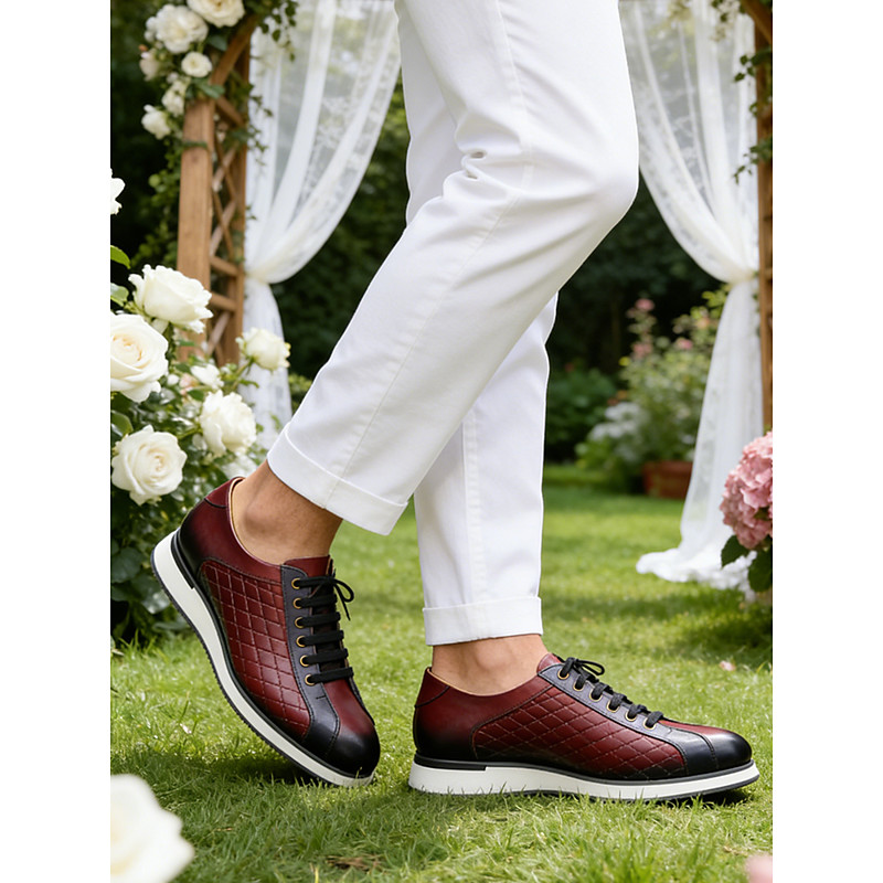Men's Genuine Leather Oxford Shoes – Red Cowhide Lace-Up Oxford Shoes for Weddings, Formal Occasions and Business Events