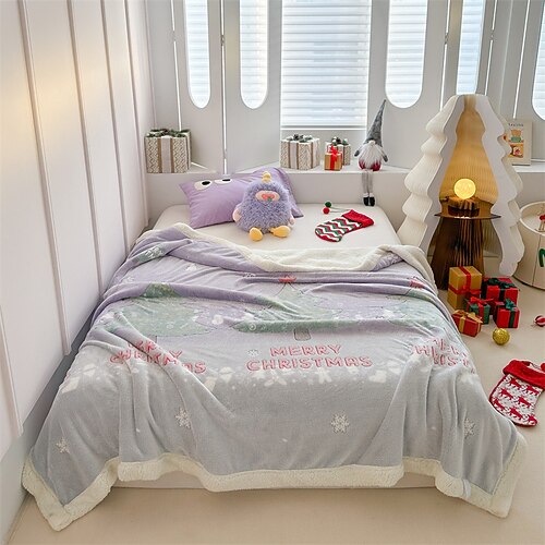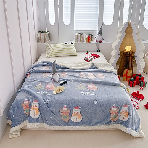 Weihnachts-Schneeflocken-Sherpa-Fleecedecke, dicker warmer Lagenüberwurf, kuschelige Geschenkdecke fürs Sofa Bett, Ferienhausdeko
