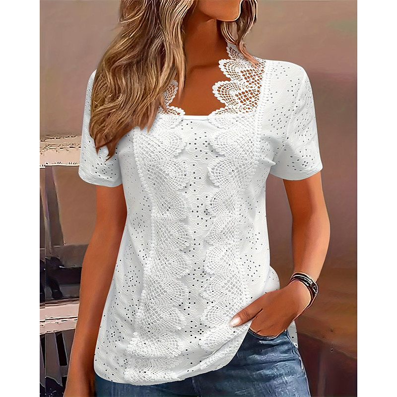 Women's Summer Tops Blouse Dressy Tops Lace Tops Solid Color Floral Graphic Elegant Vintage Ladies Short Sleeve Square Neck Regular Tops Daily Work Going out Ruched Lace Patchwork White Summer Spring