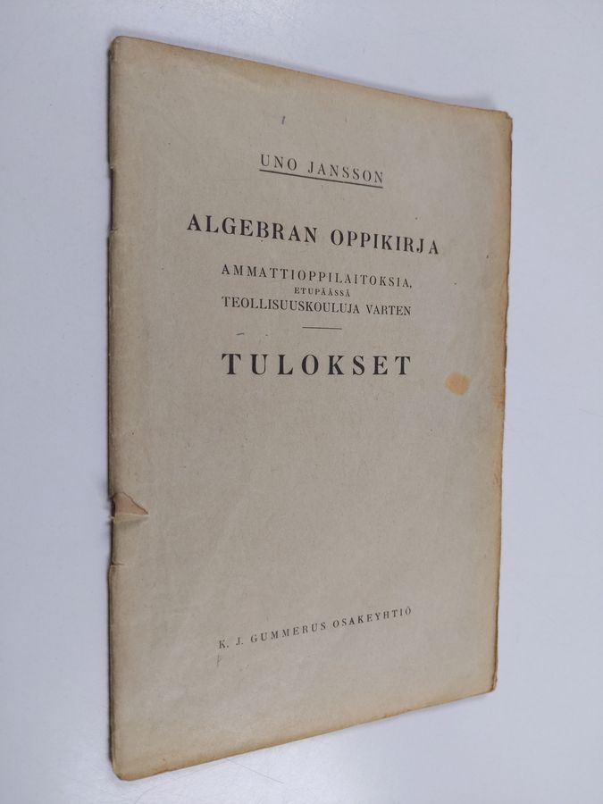 Uno Jansson : Algebran oppikirja : ammattioppilaitoksia, etupäässä teknillisiä kouluja varten : tulokset