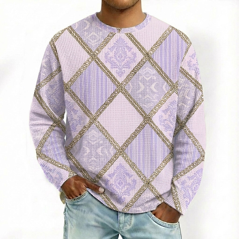 Men's Plaid Waffle Shirt Long Sleeve T shirt 3D Print Crew Neck Shirt Fashion Daily Designer Casual Daily Travel Blue Purple Green Fall Winter Clothing Apparel S M L XL XXL XXXL